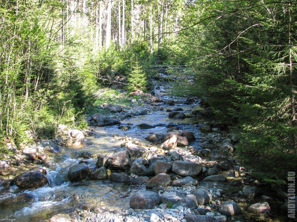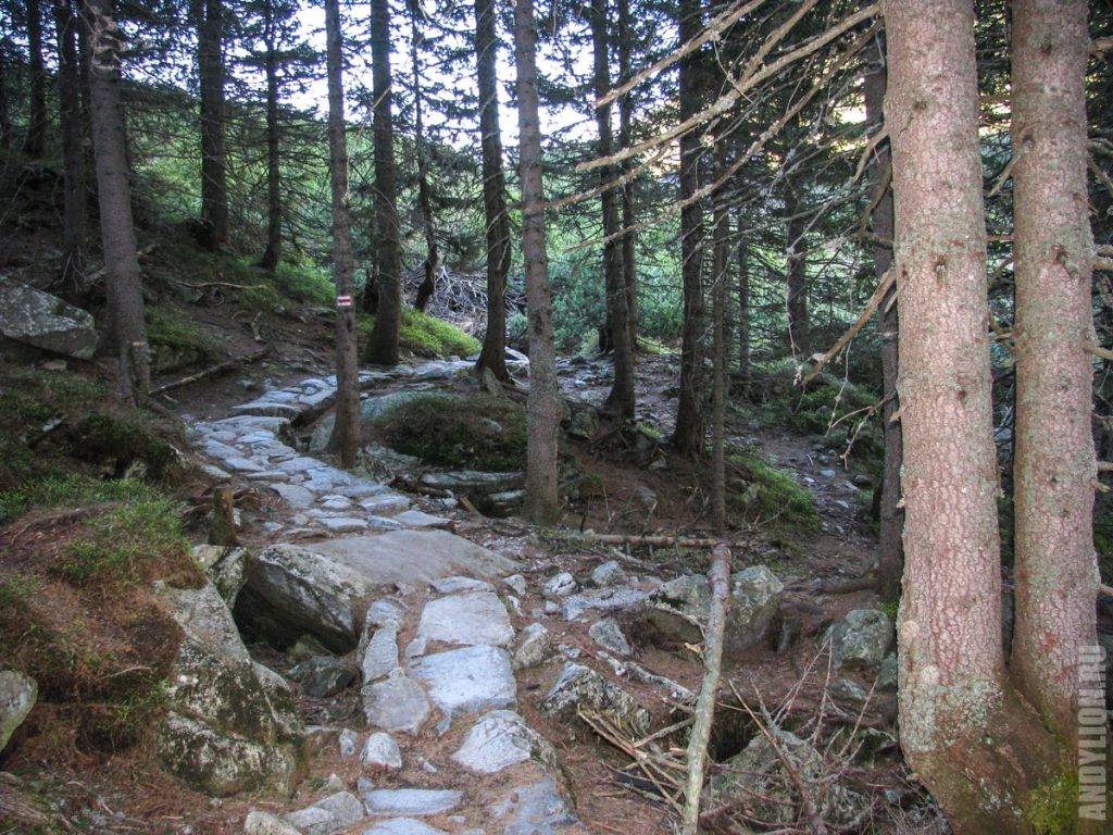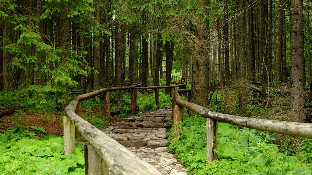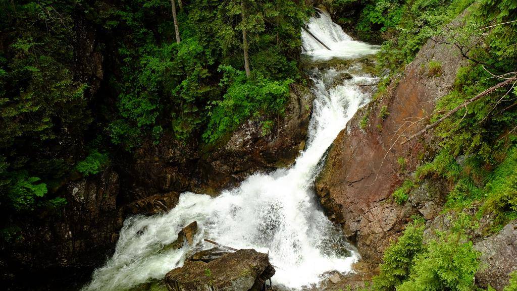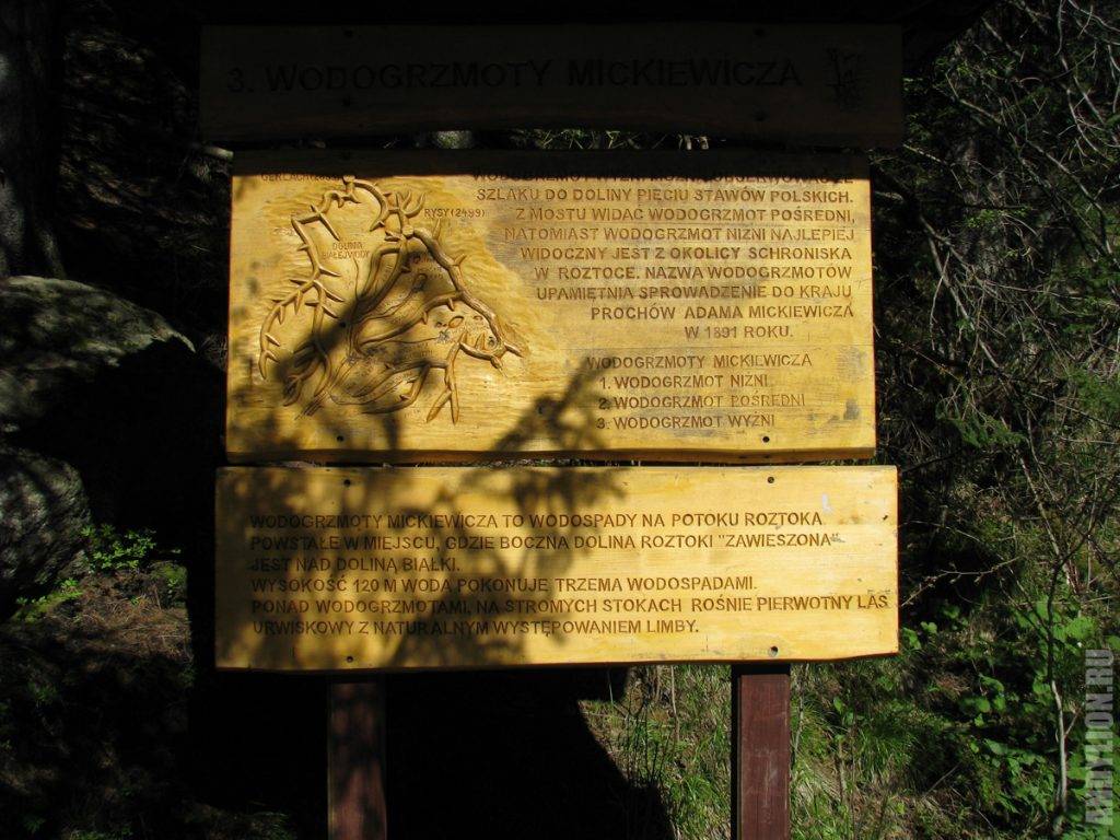 Километра через 2,5 от начала маршрута стоят два деревянных домика. В одном открыт мини-музей, посвященный Татрам. Далее вас ждет водопад Мицкевича — конечно, не Ниагарский, но свое очарование в нем есть.
