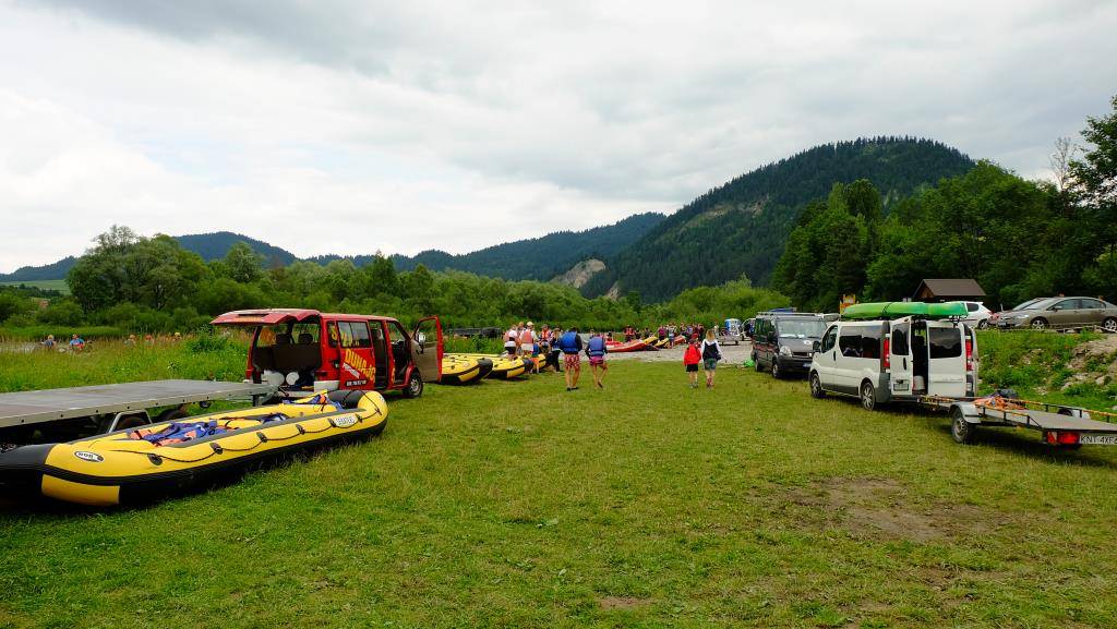 Утро следующего дня было солнечным, и мы решили отправиться на рафтинг по Дунаицу — ведь не зря мы в первый день искали место базирования рафтов. Для машин здесь предусмотрена бесплатная большая парковка. Мы приехали без предварительной записи, и для нас нашелся свободный рафт с инструктором. За семью (2 взрослых и 2 детей) мы заплатили 220 злотых плюс дорога назад — 20 злотых.
