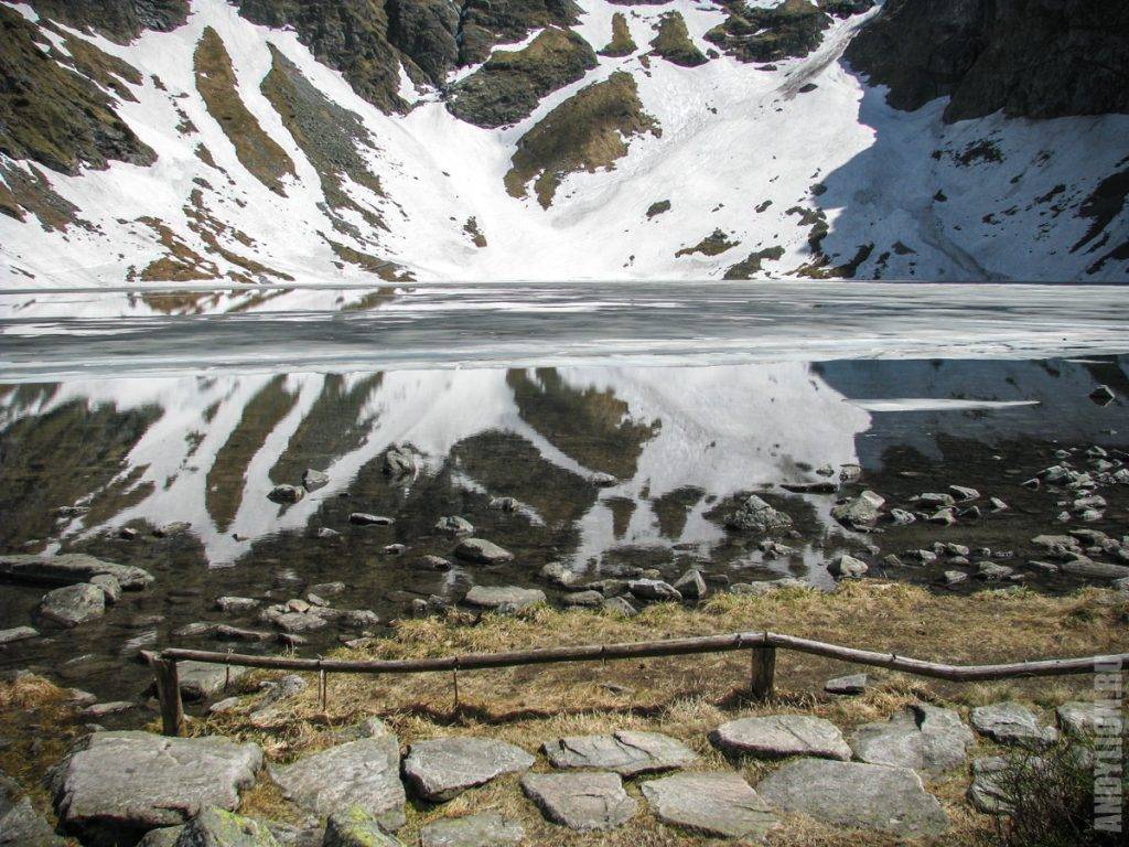 Это озеро только начало освобождаться ото льда. Поэтому черным его не назовешь.
