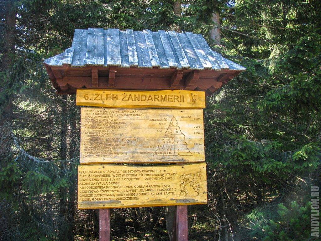 По всему пути расставлены информационные щиты с названиями местности, в которой мы в данной момент находимся и различными дополнительными сведениям, разной степени полезности. Вход в парк, кстати, тоже платный — еще 5 злотых. Это чуть больше евро, не страшно.