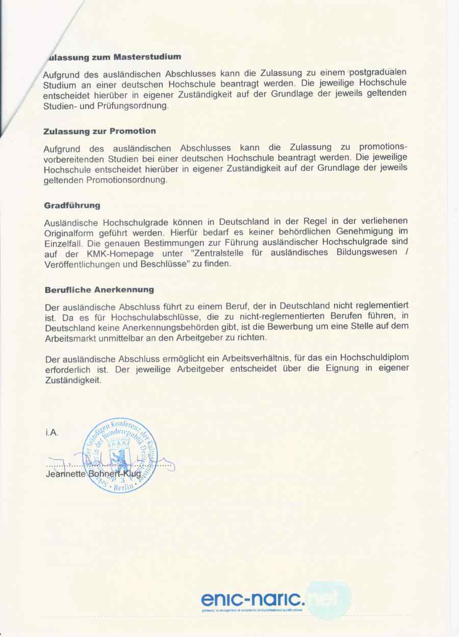 Через некоторое время пришло письмо, что документы получены, присвоен номер дела.И потом я получила подтверждение. Фото прилагаю. Мой университет в списке ZAB есть, но профессия не регламентируется в Германии. Т.е. подтверждать диплом не надо и работодатель на своё усмотрение может брать меня на работу.