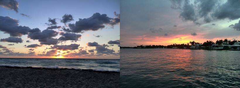 Мы были в Майами в начале мая и остались довольны тем, что так вышло. Погода была достаточно теплая, но не жаркая – около +25 °С, сезон дождей еще не наступил, облачность либо отсутствовала, либо была минимальной, и это позволило нам особо не ограничиваться в прогулках и вылазках на пляж, а еще наблюдать шикарные закаты и рассветы.