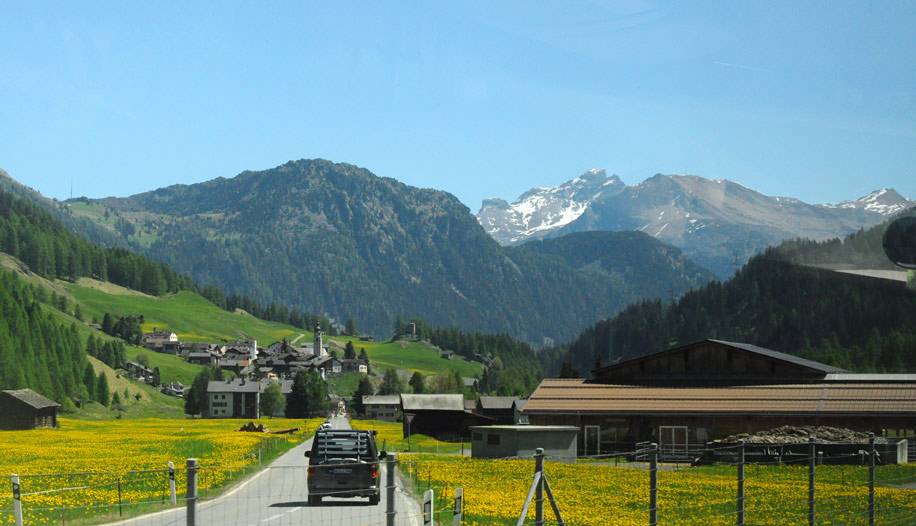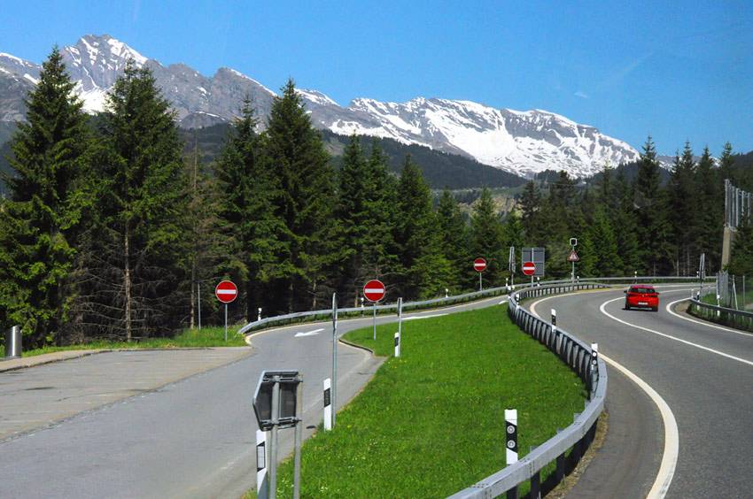 Шоссе E43 ведет дальше в горы. По пути автобус проходит через несколько туннелей, самый длинный из которых Сан-Бернардино (7 км). Но большую часть пути любуемся великолепными пейзажами: