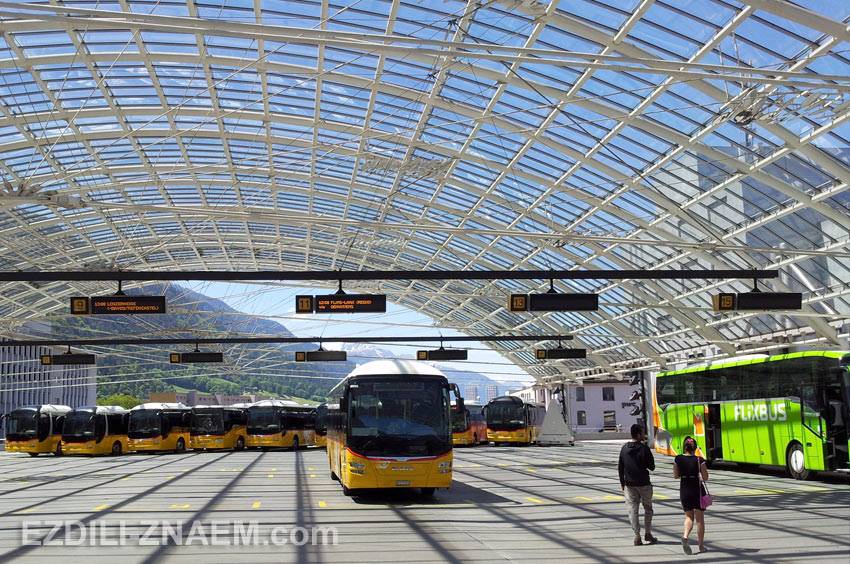 “Куррский” вокзал (хорошо звучит!), по-моему лучший автовокзал из тех, что я видел. Он расположен прямо над ж.д. станцией. Если запланировали дальше ехать по Швейцарии на поезде, достаточно просто выйти с автобуса и спуститься на эскалаторе.