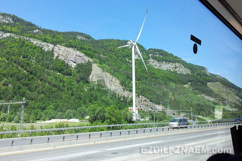 На фото: ветрогенераторы вдоль дороги. Непривычно
