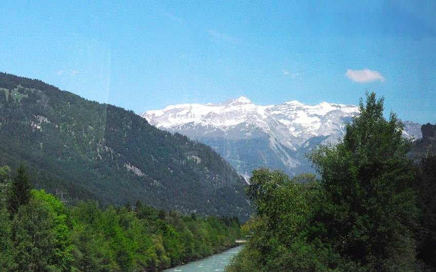 Остановка в Куре – 20 минут. На платформе просторно, вся информация понятна, над головой стеклянный навес, вокруг горы. Красота! Единственно, надо учесть, – в магазинчике на автовокзале не принимают карты и евро монеты, могут взять купюру, но сдачу дают мелкими франками. Поэтому лучше спуститься вниз, в супермаркет Migros, – набрать, что хочешь, и рассчитаться карточкой.