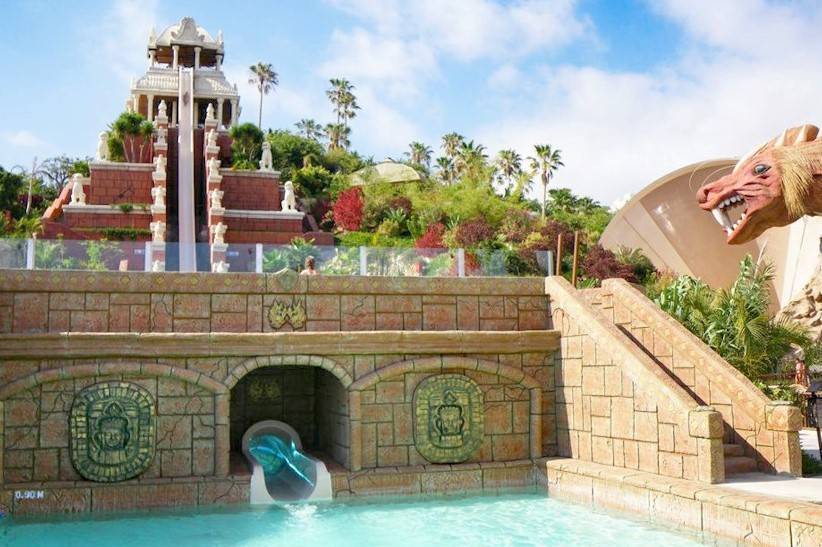 Сиам-парк – это развлекательный комплекс острова Тенерифе, расположившийся на территории площадью 18,5 гектаров. Он включает в себя 13 аттракционов, 7 ресторанов и баров, магазины, огромный бассейн с волнами. Уникальностью аквапарка является то, что все здания, статуи и аттракционы выполнены в тайском стиле (Сиам – это старое название королевства Таиланд). Любителям этой экзотической азиатской страны находиться здесь будет приятно вдвойне. Перед началом строительства комплекса его владелец Кристоф Кисслинг даже получил официальное разрешение от короля Таиланда на право использовать тематику королевства и его название в своём будущем проекте. Он пригласил известного тайского профессора Руетаи, который помог ему спроектировать здания комплекса. Все постройки аквапарка не являются точными копиями домов и статуй, находящихся на территории Таиланда, но они выдержаны в стиле этой страны.