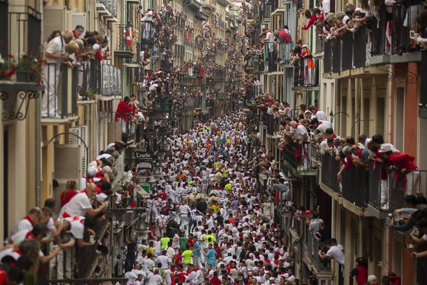 Это зрелищное событие начали проводить в 14-м веке, когда фермеры шли перед своими животными, чтобы отвести их на продажу на рынке. Постепенно неспешная деловая прогулка преобразовалась в бешеную гонку, участие в которой принимают только самые смелые и отчаянные.