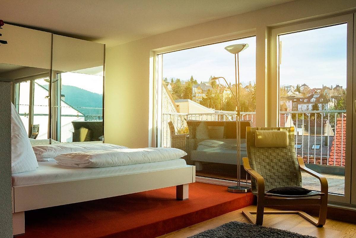 - Hotel Bischoff (Römerplatz, 2) – небольшой семейный отель напротив термального комплекса Фридрихсбад. В стоимость номера включен завтрак и пользование Wi-Fi