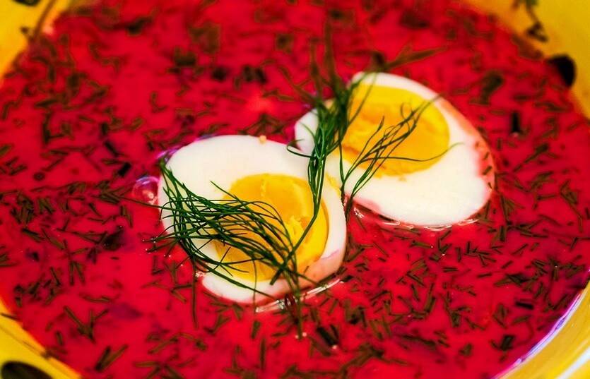 В супермаркетах Риги можно купить холодник в стеклянных банках, который будет легко привезти домой. Его достаточно вылить в тарелку, залить пахтой или кефиром, добавить зелень – это вкусно!