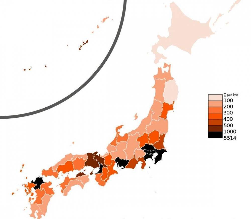 Если обратиться к средней плотности населения в Японии, то можно будет увидеть, что она здесь не просто велика, а очень велика и составляет порядка 340 человек на один квадратный километр. Это очень много, но нельзя забывать, что в Японии только одна треть земель пригодна для жизни и это говорит о том, что реальная плотность населения намного выше.