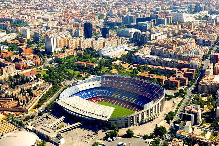 Иногда неискушенные любители футбола, а то и просто туристы, путают стадион Барселоны Estadi Olimpic с грандиозной ареной Camp Nou. Этот футбольный стадион в Барселоне был построен в 1957 году и с тех пор является собственностью каталонского футбольного клуба «Барселона». В канун первенства мира по футболу 1982 года вместимость арены достигла 120 тысяч человек. Он превратился в один из крупнейших стадионов мира. И только с 1998 года после введения УЕФА положения об оборудовании всех спортивных сооружений индивидуальными сидячими местами вместимость «Камп Ноу» стала составлять 98 тысяч 930 зрителей.