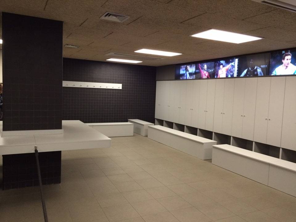 Это довольно скромно обставленное помещение, в котором находятся только необходимые вещи без излишеств, команде соперника будет удобно в ней переодеваться, но вот отдохнуть и расслабиться не удастся. Здесь даже душ общий.