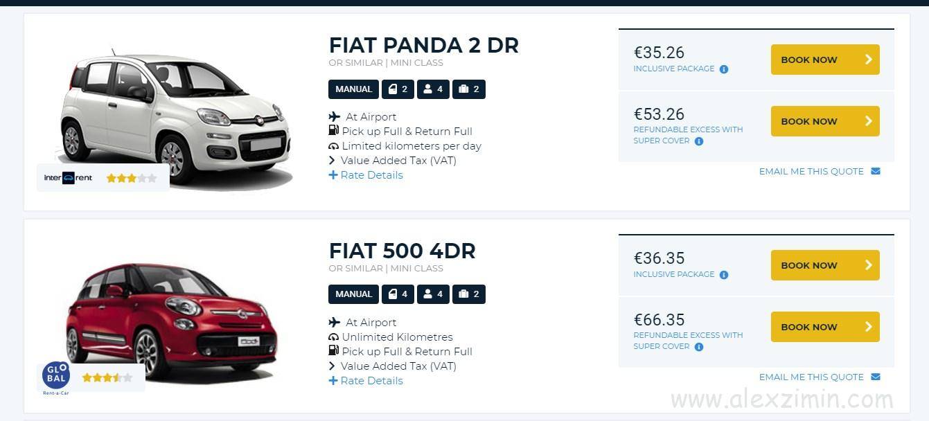 Забронировал машину прокатчика Alamo на сайте Economybookings за 114,32 евро за 3 дня, а непосредственно на сайте Alamo она стоила 124,08 евро: