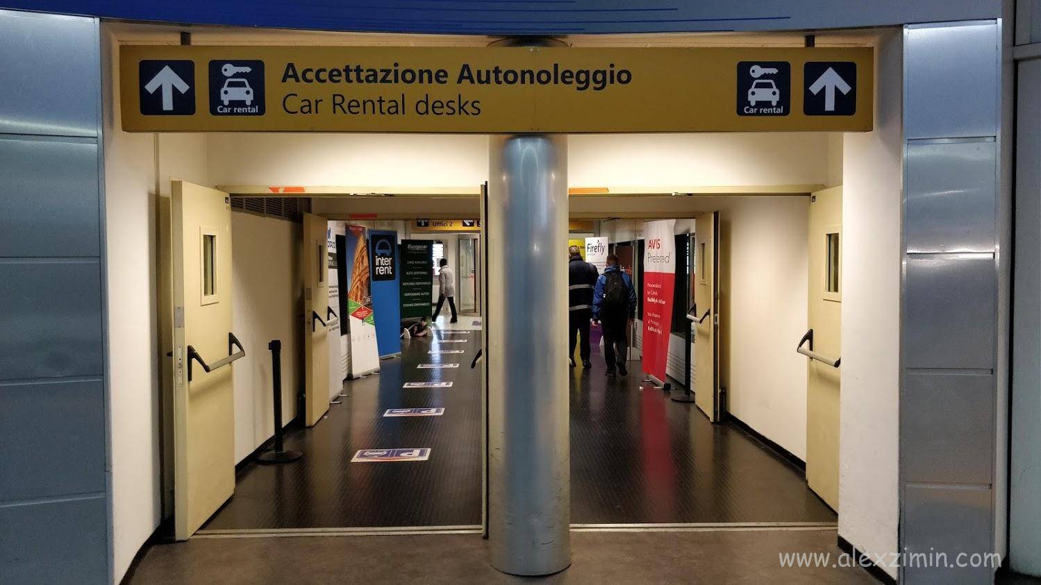 Вход в помещение где расположены прокатные конторы аэропорта Фьюмичино