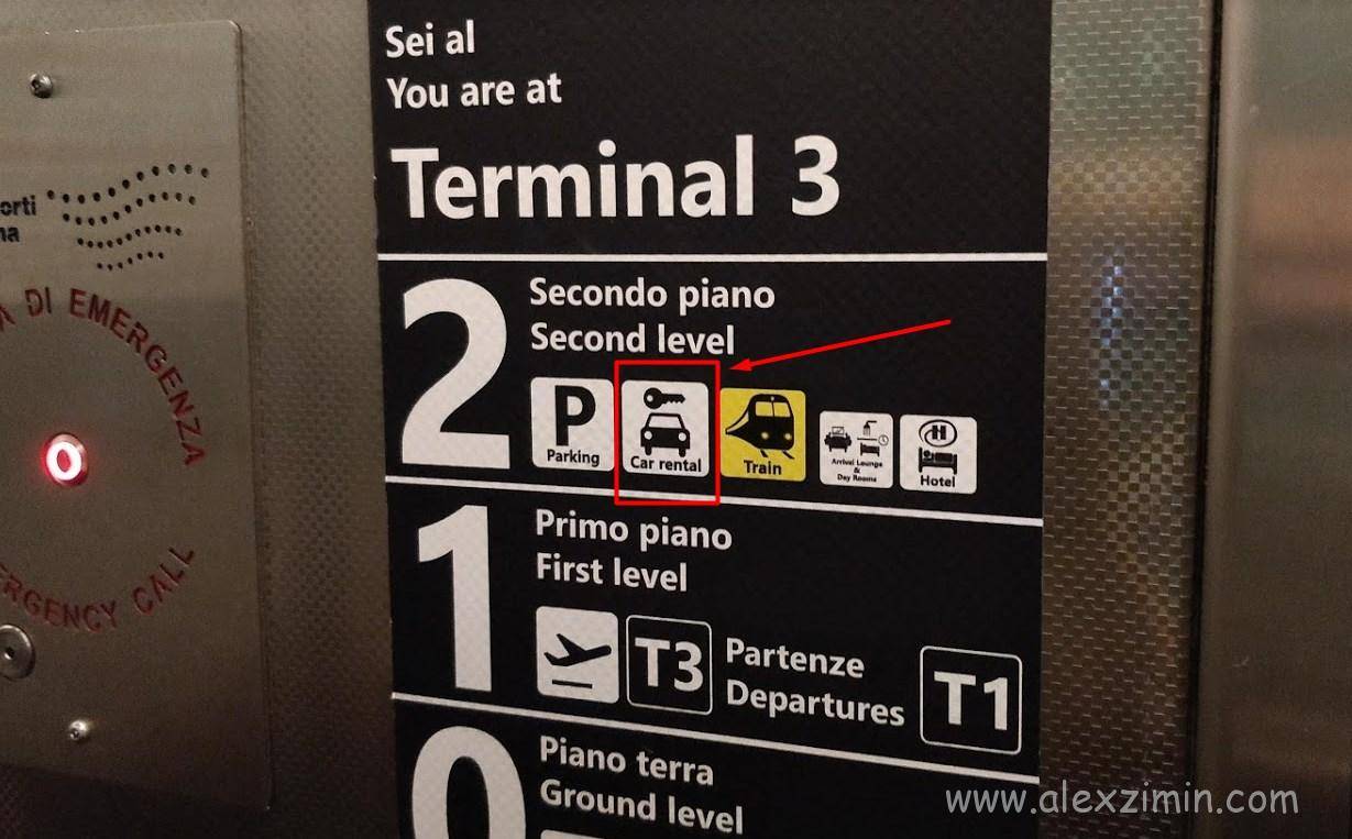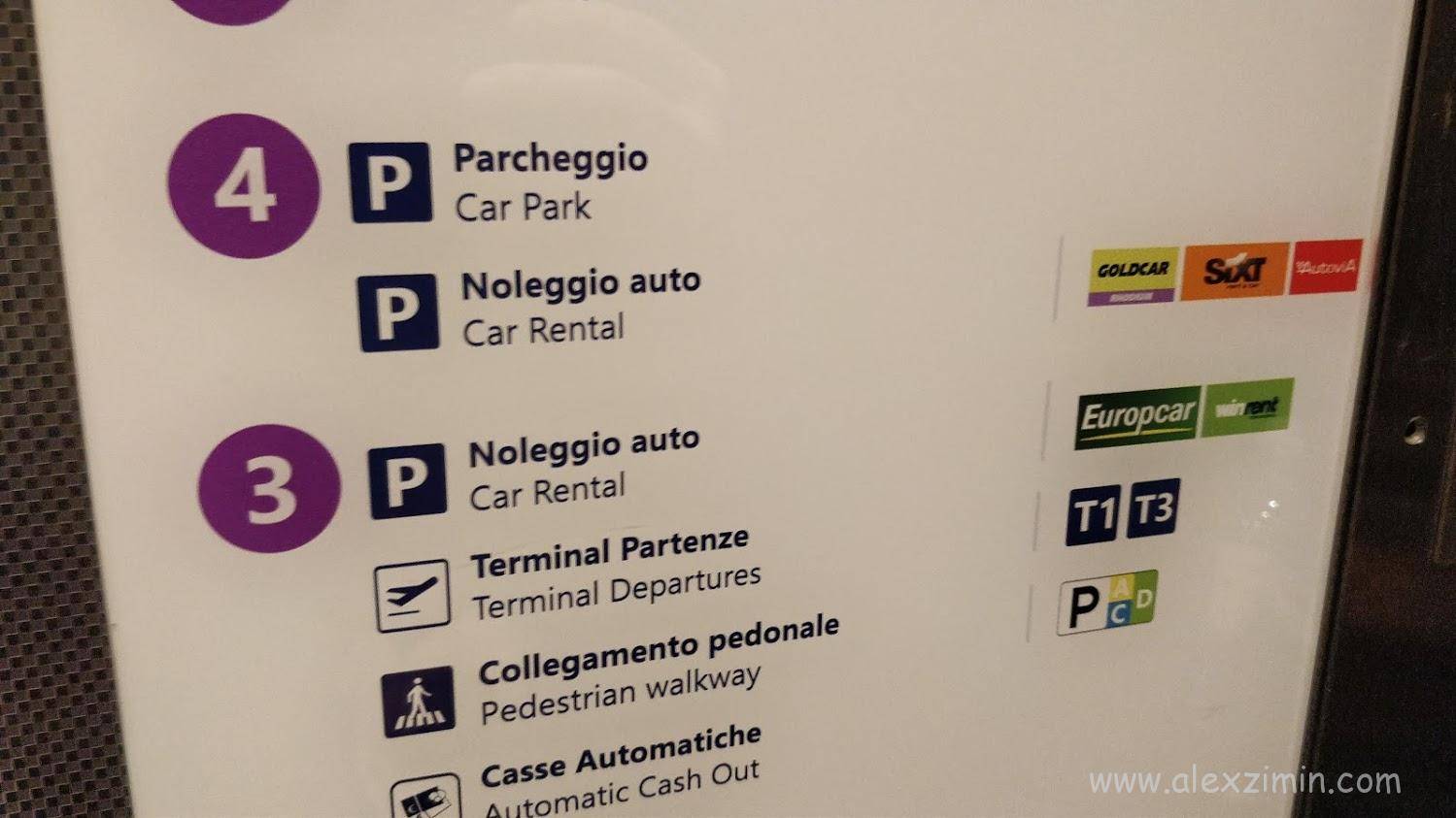Крупнейший аэропорт Италии, здесь огромный поток пассажиров, которых обслуживает около 20 прокатных контор. Такого количества крупных прокатчиков в других аэропортах я не видел. В аэропорту Фьюмичино несколько терминалов, основной терминал, куда прилетают большинство туристов – Т3.