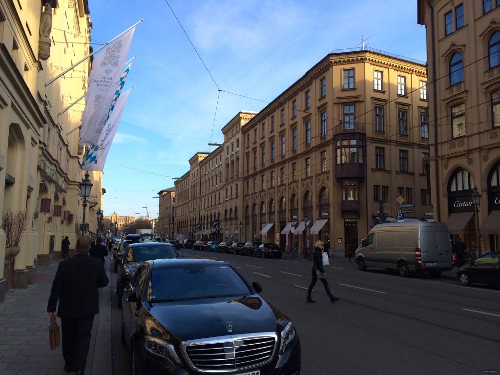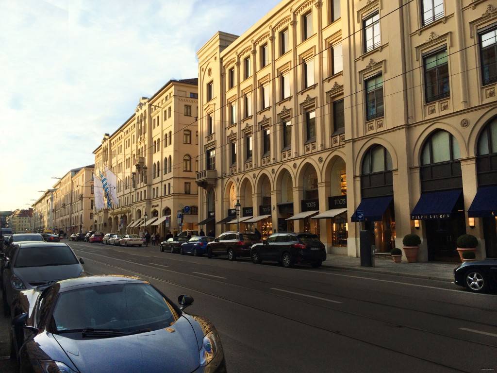 Вообще-то, нашей целью было зайти только в бутик Louis Vuitton, но все-таки прошлись по всей Максимилианштрассе. Нам сразу же стало понятно, почему эта улица считается самой дорогой и фешенебельной в Мюнхене. Оперный театр, пятизвездочный отель Кемпински, шикарное здание баварского правительства – все эти, как и многие другие архитектурные шедевры, находятся здесь. Припаркованные вдоль улицы дорогие автомобили придают ей еще больше блеска. По мнению многих, Максимилианштрассе напоминает знаменитую Авеню Монтень в Париже.