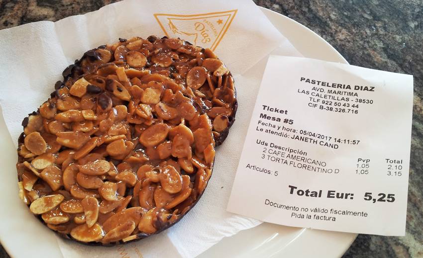 В данном примере 2 кофе (американо), порция пирога с тунцом и яблочный пирог: 7.80 евро.