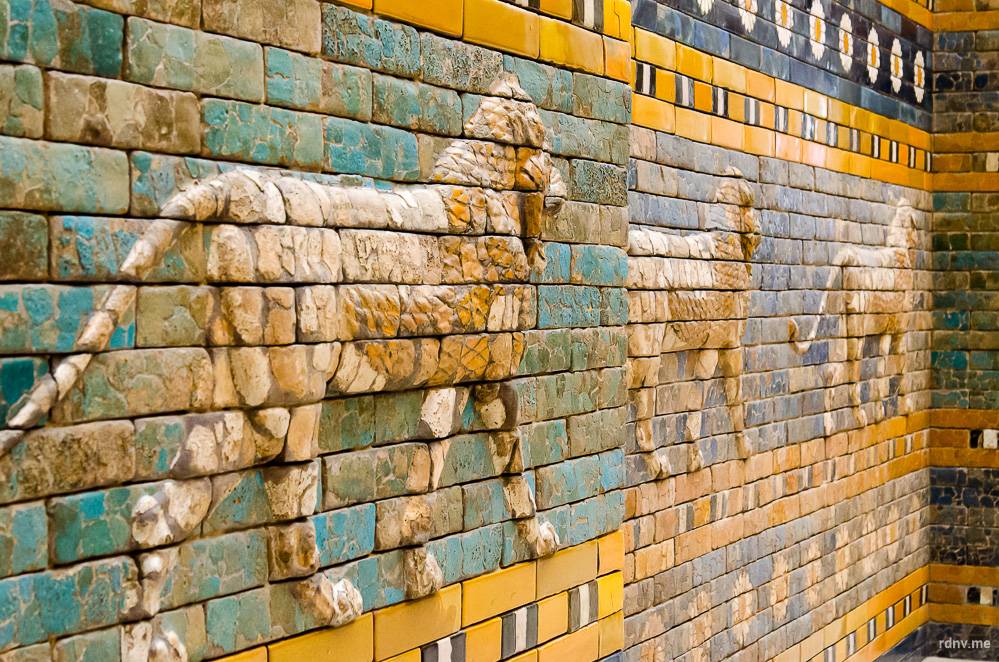 Как вы уже догадались из названия, ворота посвящены богине Иштар. Они созданы из кирпича, покрытого голубой, белой, желтой и черной глазурью. Яркость красок здесь поражает не меньше, чем размеры сооружения