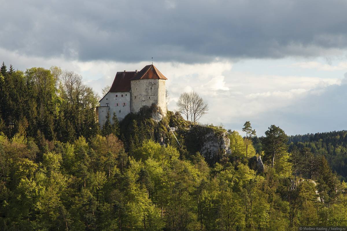 Тем временем часы давно уже показывали время ужина, а мы пока ещё даже не обедали. Кроме того — впереди был ещё неблизкий путь в Швейцарию. Перекусив в найденном неподалёку Макдональдсе, мы отправились дальше — в город Зигмаринген. По пути проехали красивый маленький феодальный замок, расположенный на крутой скале где-то рядом со Штрассбергом.