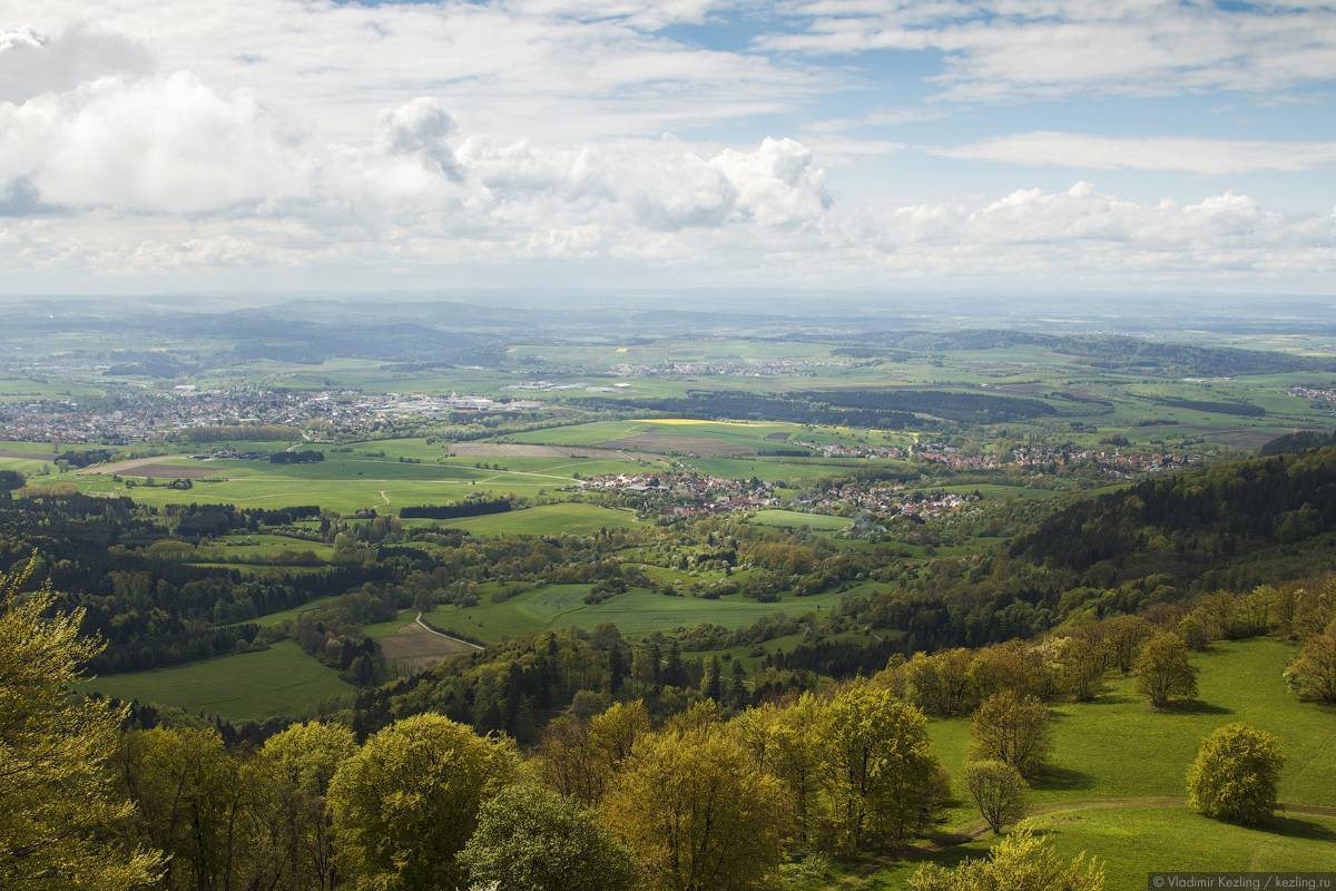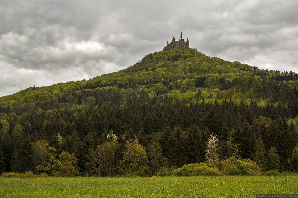 Наконец, большой указатель увёл нас на небольшую дорогу виляющую среди полей, и после очередного поворота из-за неожиданно обвалившейся пелены дождя на высоком холме Гогенцоллерн показался одноимённый замок — родовое гнездо династии, давшее ей девятьсот лет назад своё имя.