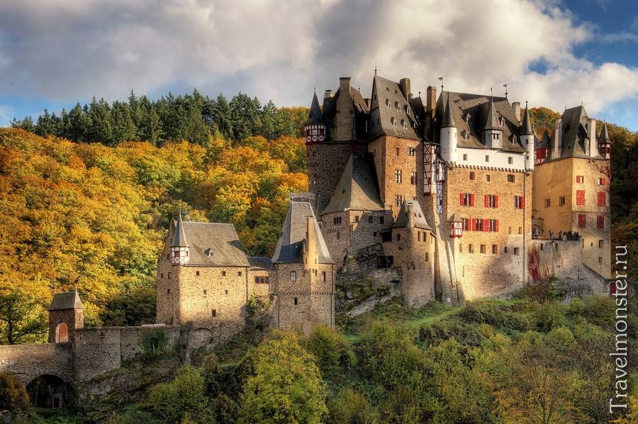 Этот замок еще называют сказочным замком и типичным образцом жилья германского рыцаря. И действительно: постройка находится на живописной поляне леса, вокруг которого только горные образования рельефа. Такое «глухое» месторасположение способствовало тому, что замок никогда никем не захватывался. Он уцелел даже во времена Французской революции и двух самых жестких в тех местах войн XVII и XVIII веков. Поэтому здание полностью сохранилось до наших времен.