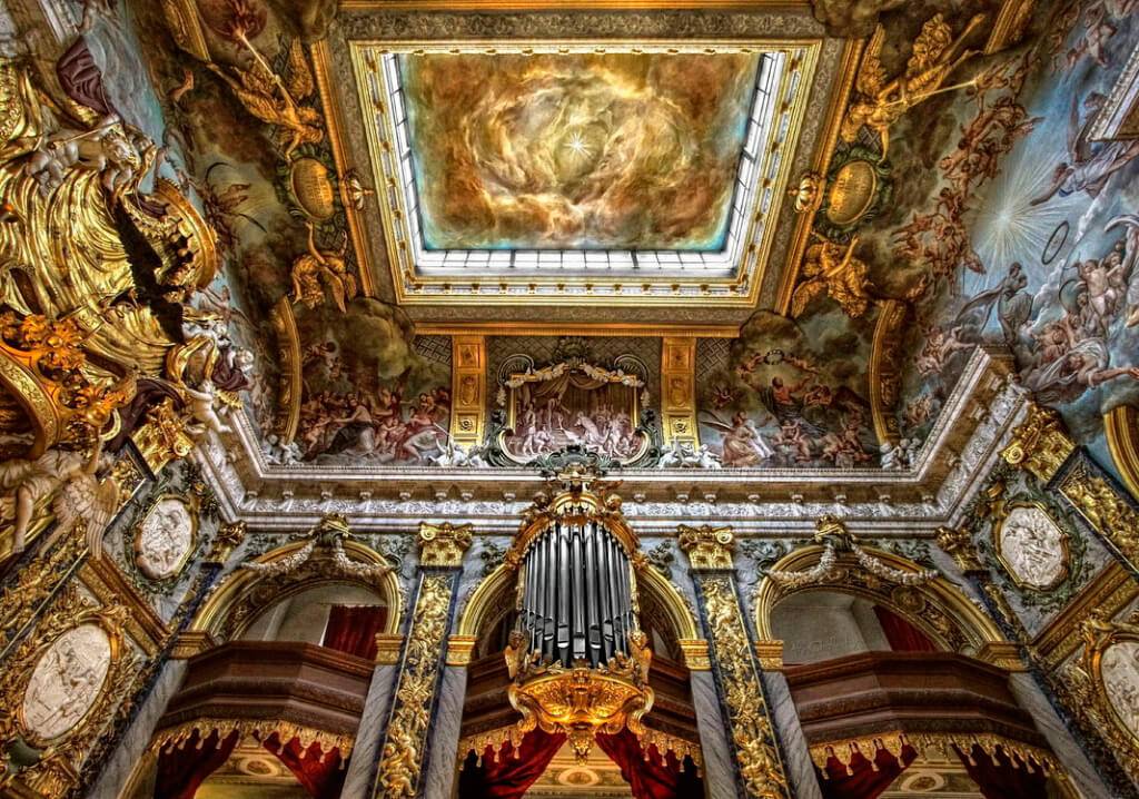 Внутреннее убранство выполнено в лучших традициях барокко и рококо: здесь вы найдете и вычурную отделку, и причудливую объемную лепнину, и множество статуй. В оформлении стен использовались как насыщенные, так и мягкие пастельные тона, щедро разбавленные золотыми элементами. Залы и личные покои членов королевской семьи обставлены мебелью с резьбой и богатой инкрустацией.
