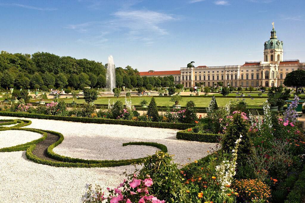 Обрамлением дворцу служит великолепный парк — идеальное место для прогулок и отдыха. В 1697 году София Шарлотта пригласила Симеона Гордо — ученика знаменитого садовода Версаля Андре Ле Нотра — для создания первого на немецких землях французского сада в стиле барокко. Его открытие состоялось через два года и было ознаменовано великолепным празднеством. Талантливая и высокообразованная королева использовала свои новые владения не только для фестивалей с музыкой, танцами и театральными представлениями, но и для уединенных бесед и споров с философом Готфридом Вильгельмом Лейбницем.